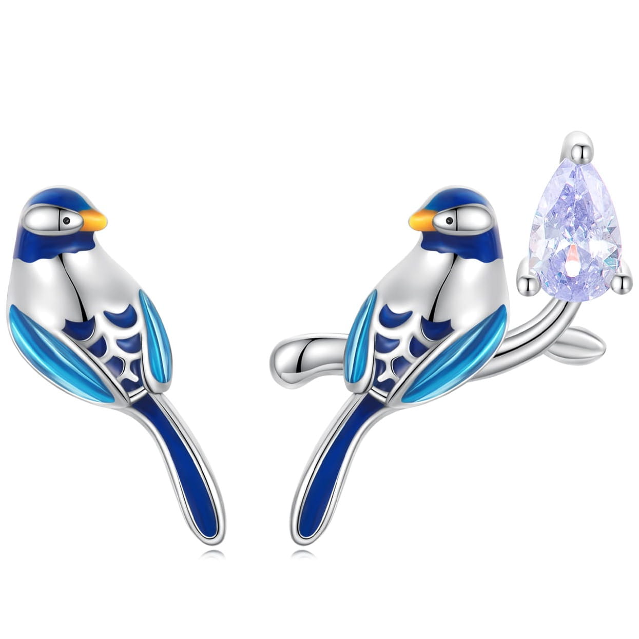 Kolczyki ze srebra - Błękitny ptak zimorodek na gałęzi z cyrkonią srebro 925