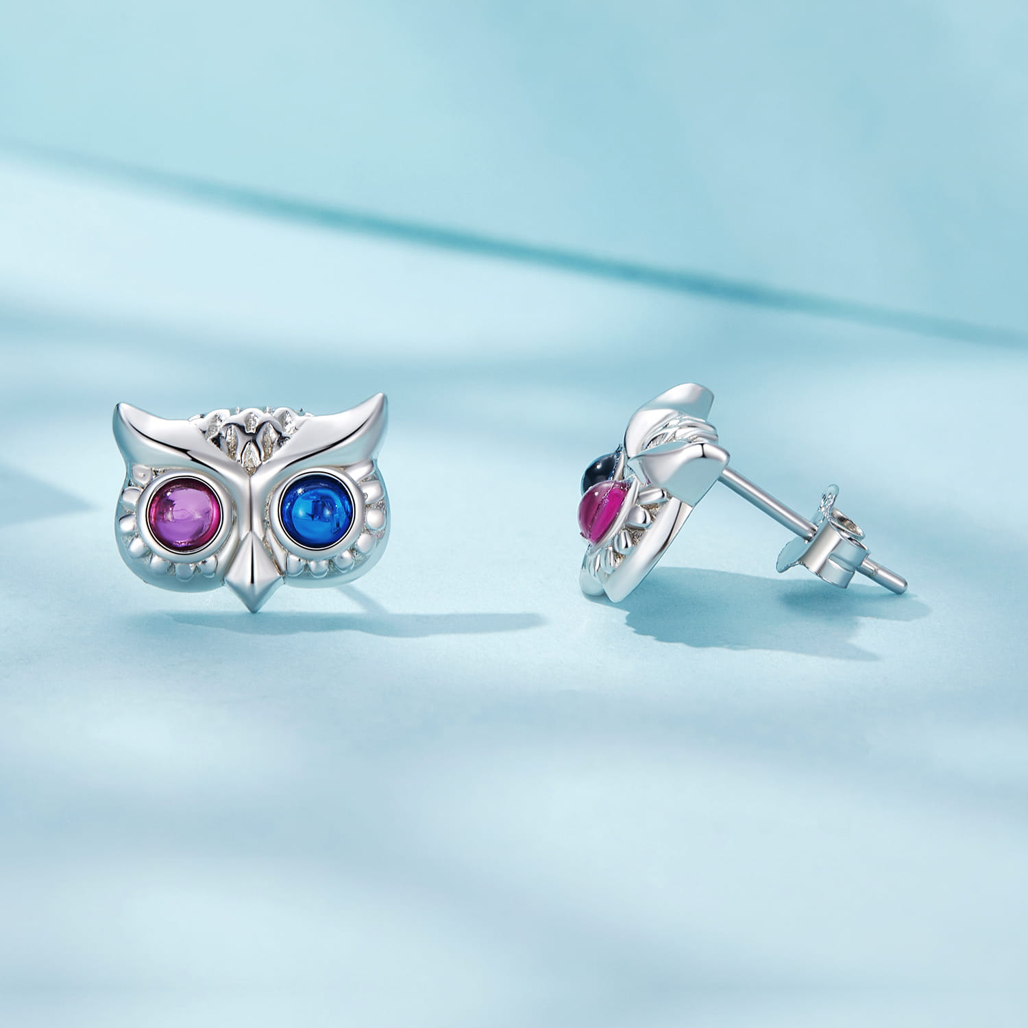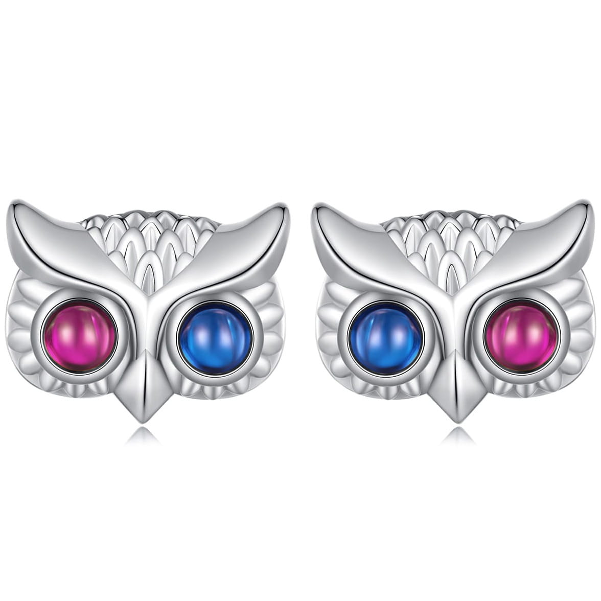 Hipnotyzujące, duże, dwukolorowe oczy sówki mocno zwracają na siebie uwagę w tych pokrytych platyną sztyftowych kolczykach.