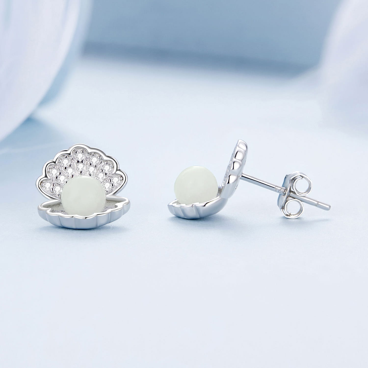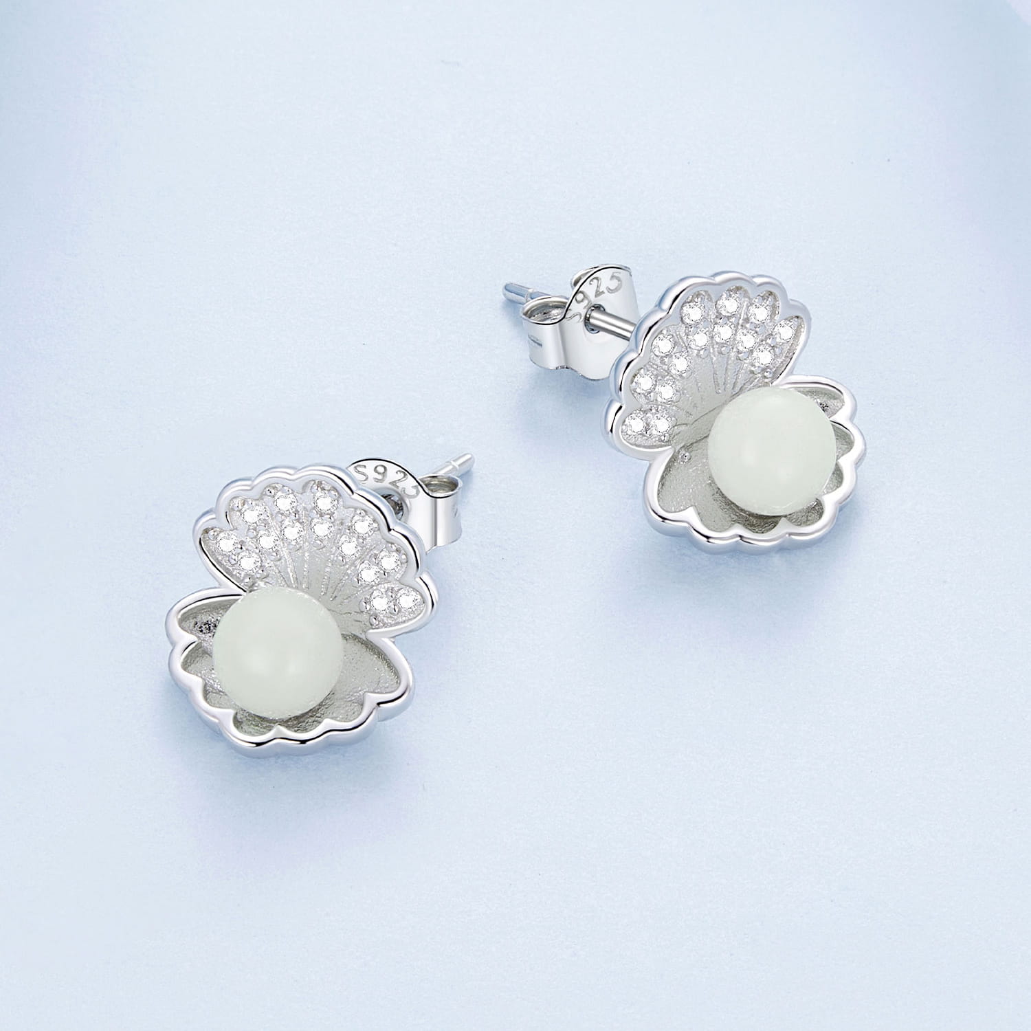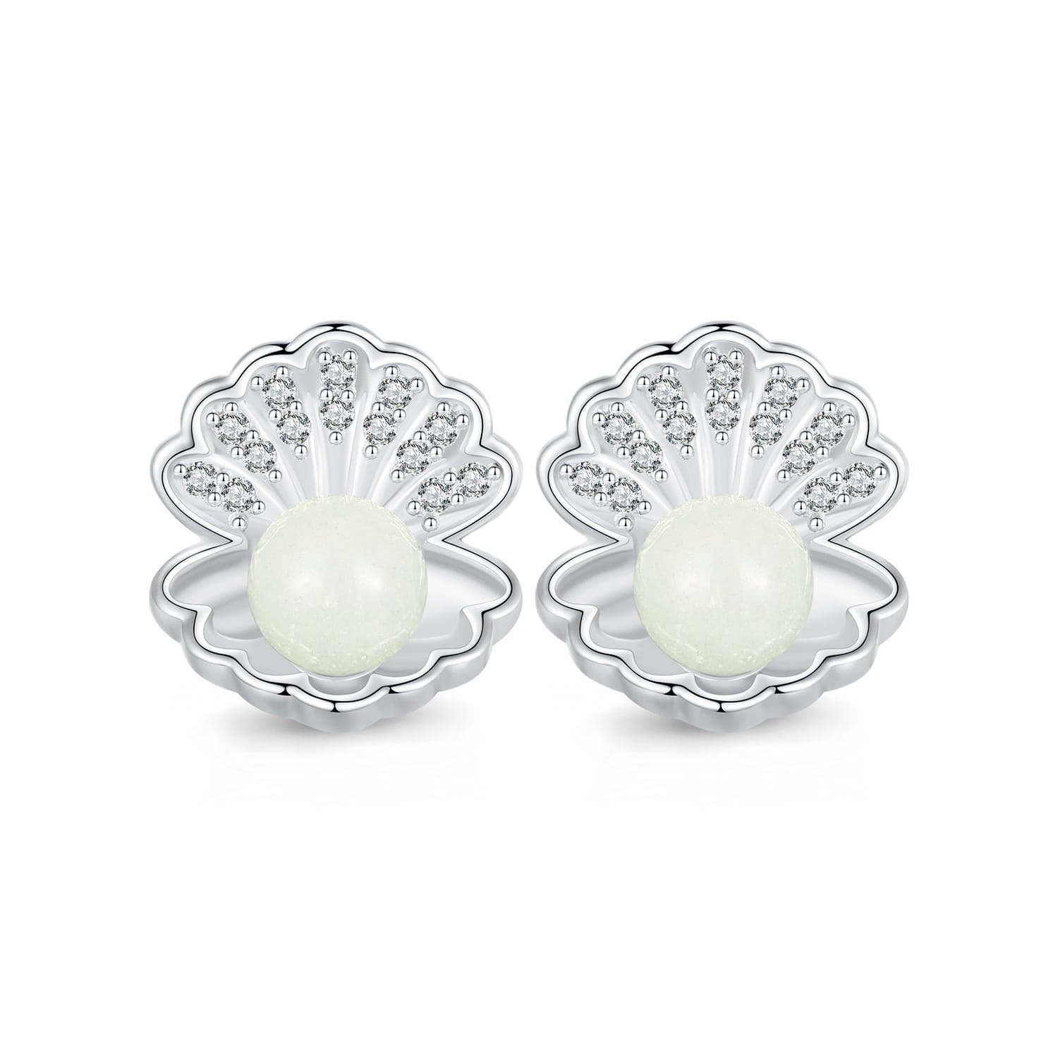 Kolczyki ze srebra świecące w ciemności - Perły w muszli srebro 925