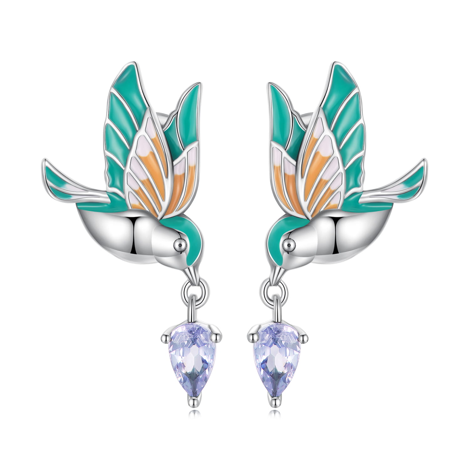 Kolczyki ze srebra - Zielone ptaki zimorodki z cyrkonią srebro 925